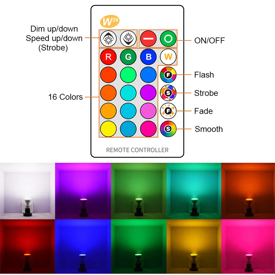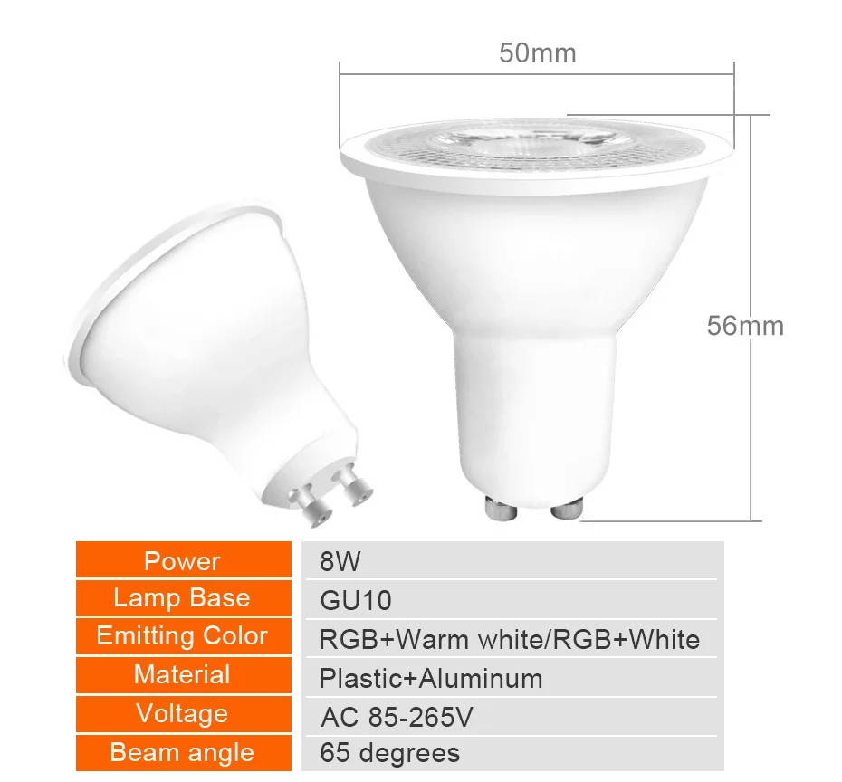 Model:GU10 8W RGB Spotlight IR Remote Control W28 or Tuya Smart