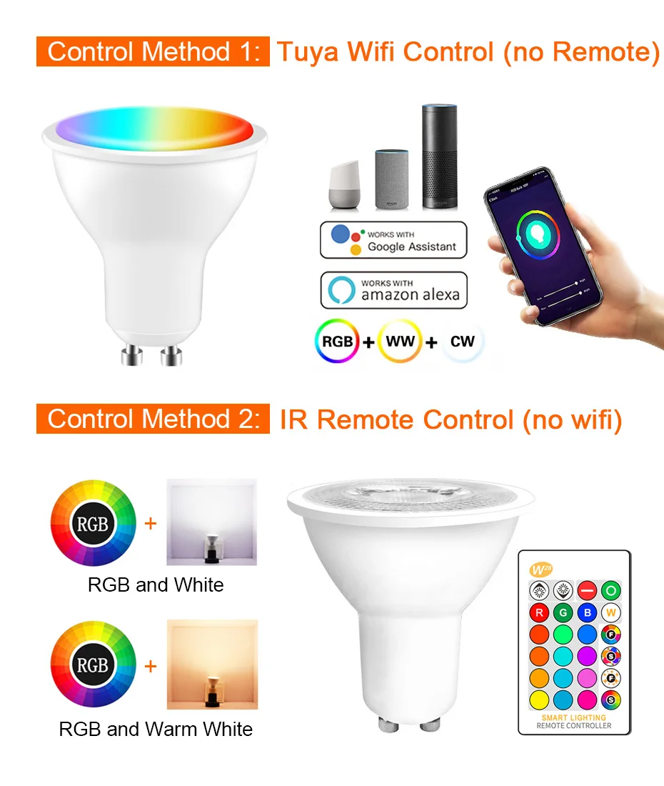 LED Bulb GU10 Spotlight 8W RGB Dimmable Lamp RGBW RGBWW Lights IR Remote / Tuya Smart Wifi Control Work with Alexa for Home