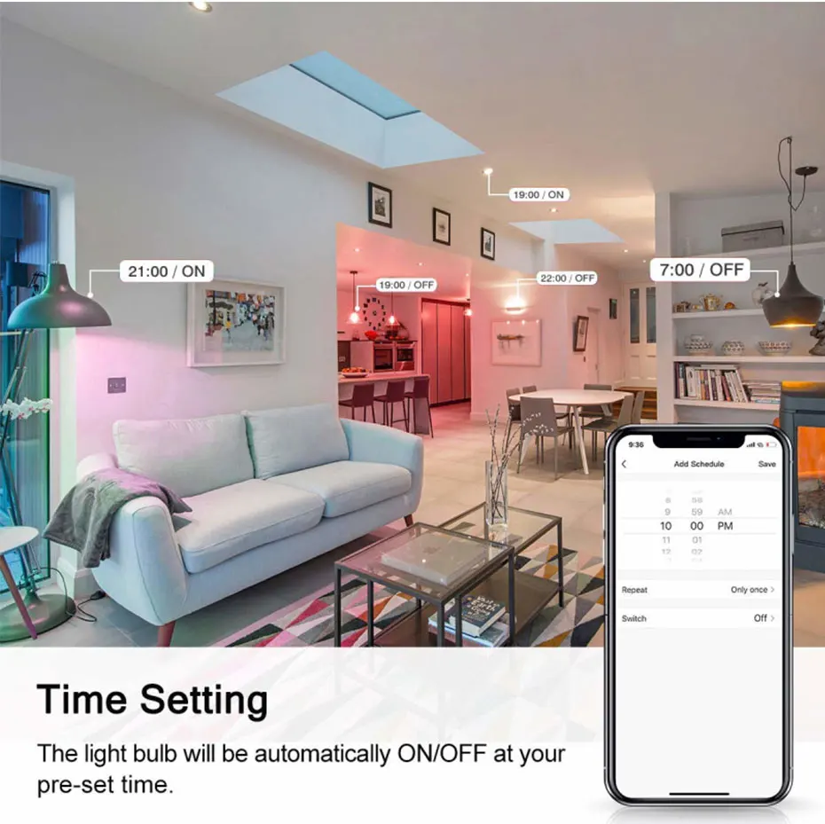 1. The device is directly connected to WiFi, and the mobile phone application can remotely control the light bulb at home at any time.