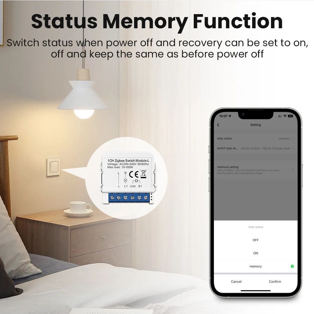 [ Status Memory ] -When electricity cut off and on again ,you can definite the status as on,off or as last status.