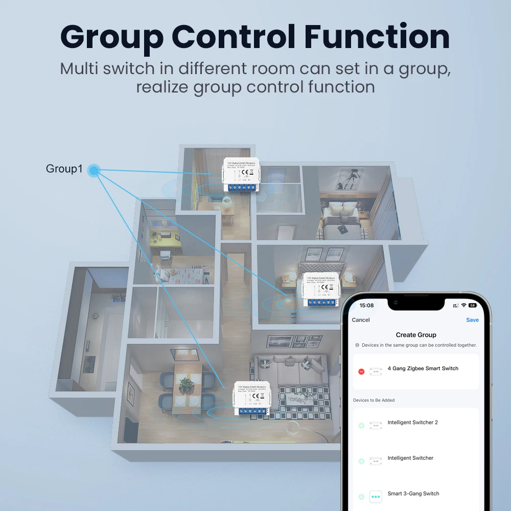 [ Group-Control Function ] -Multi switch in different room can set in a group ,realize group control function.